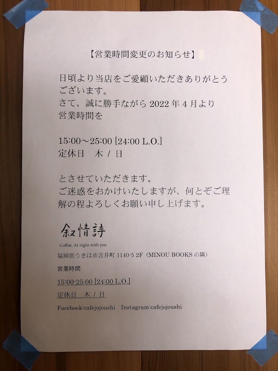 If you find yourself in Ukiha, Japan, make your way to a hidden gem nestled away from the bustle of the city—叙情詩~Coffee, At night with you~. This unique café offers a magical experience, especially for night owls, as it operates from 6 PM to midnight, making it the sole late-night café in the area.